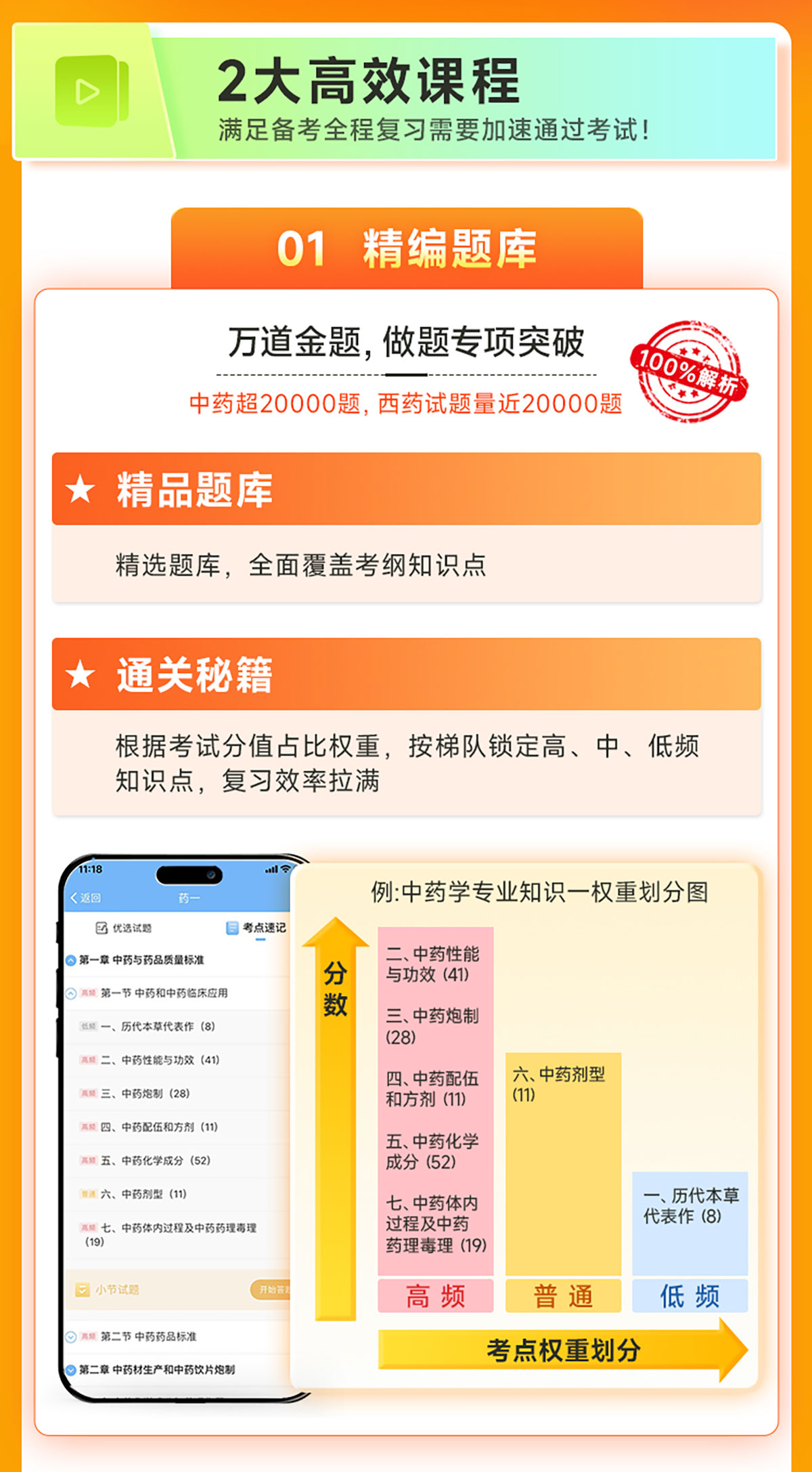 中药覆盖200+考点、1000+题;西药覆盖250+考点、1500+题