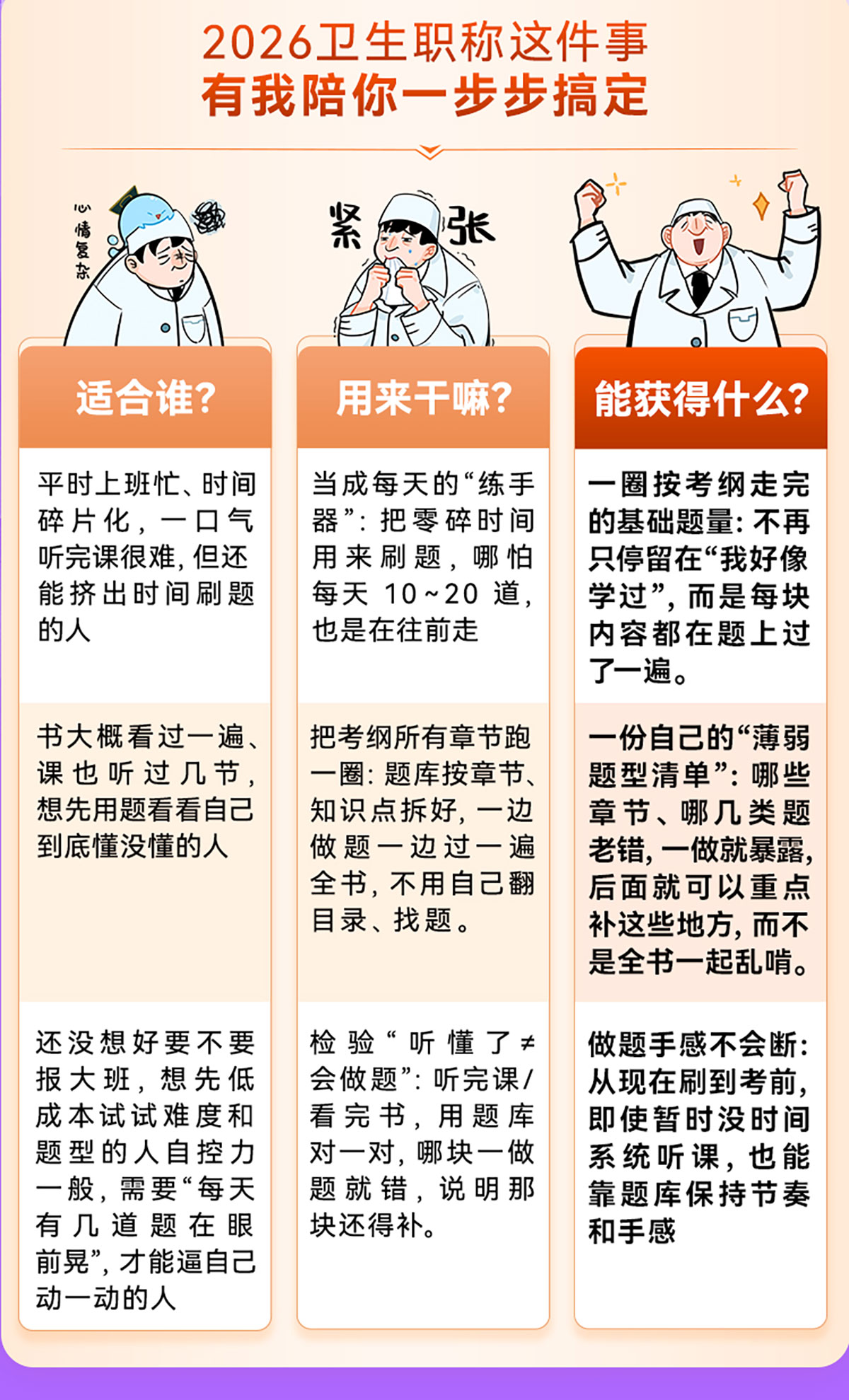 目标:帮助考生系统备考2026年卫生职称考试,尤其适合时间碎片化、需要持续刷题的人群。